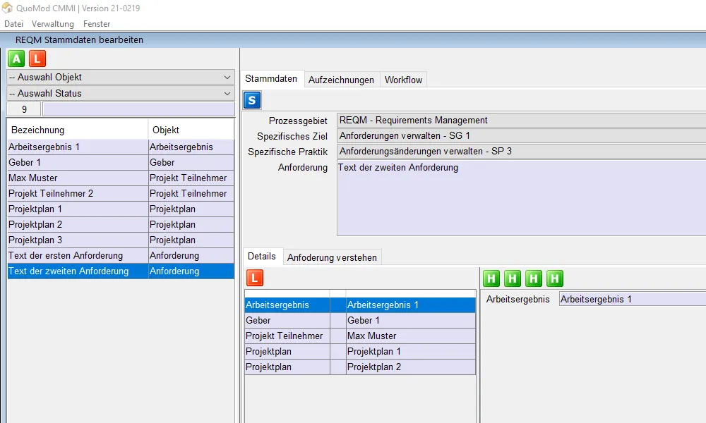 Mit der neuen REQM Software entwickeln wir eine Methodik die einzelnen CMMI Inhalte in einem Unternehmen zu etablieren. Und der Clou: Selbst die Anforderungen zu der neuen REQM Software können als Anforderungen, als Inhalte in die Software, eingepflegt werden.